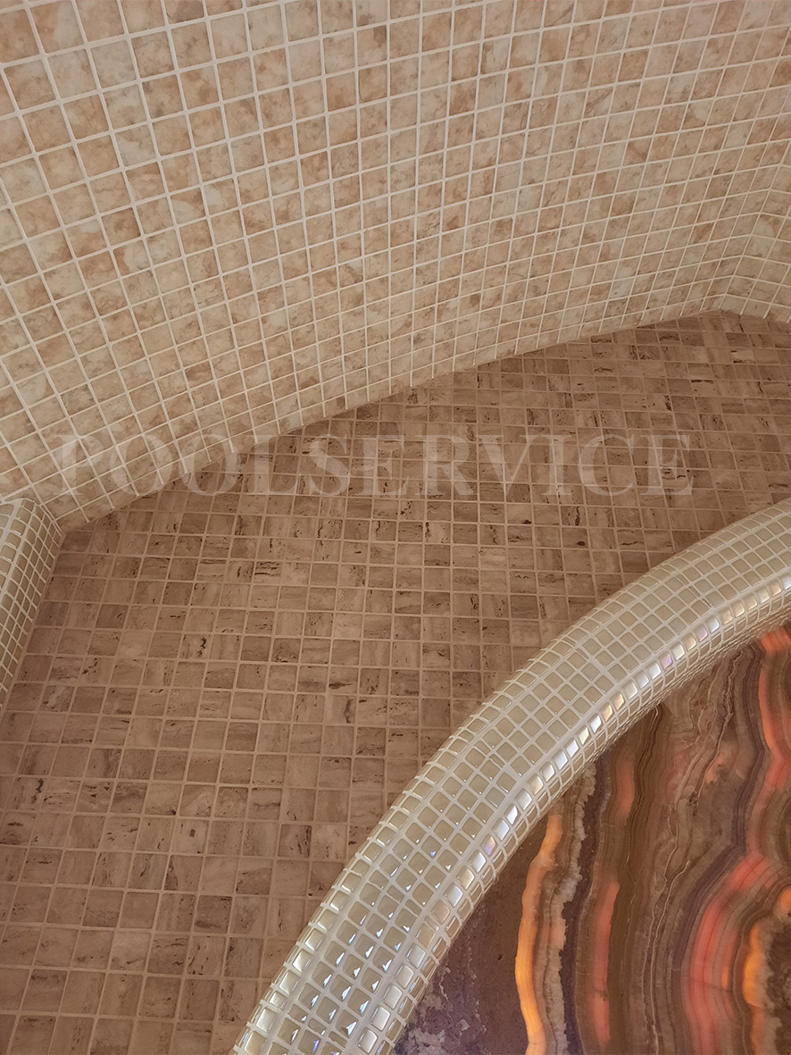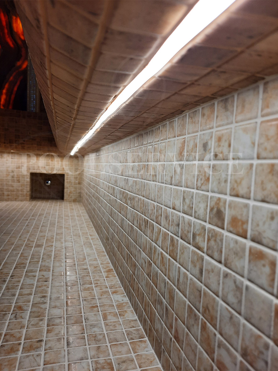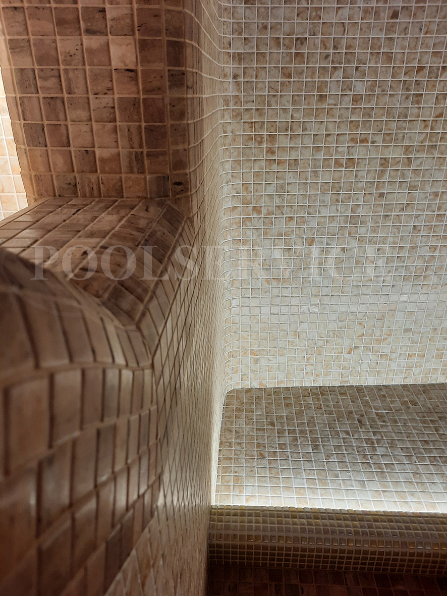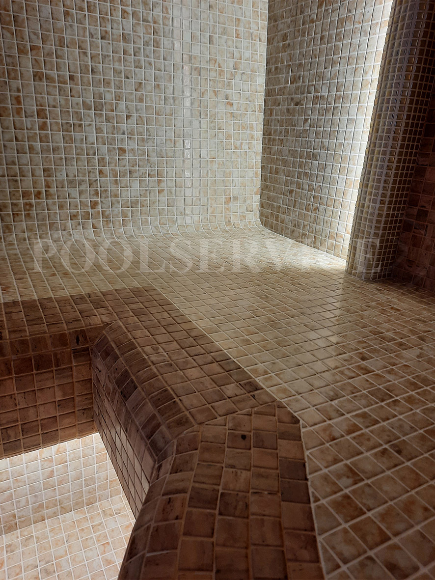 Стены, потолок, сиденья: стеклянная мозаика Ezarri.