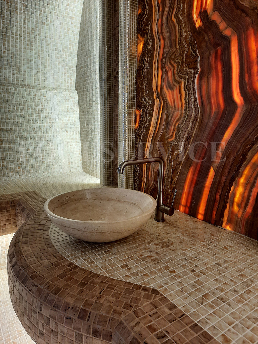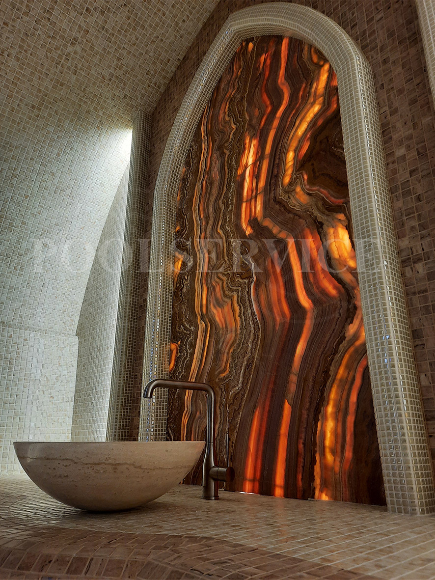 Декор.элемент: панно из оникса с подсветкой.