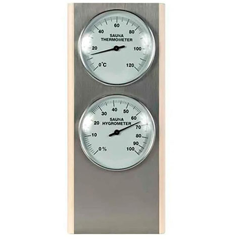 Термогигрометр MAESTRO WOODS используется для получения точных данных об уровне температуры и влажности воздуха в парильной комнате.
