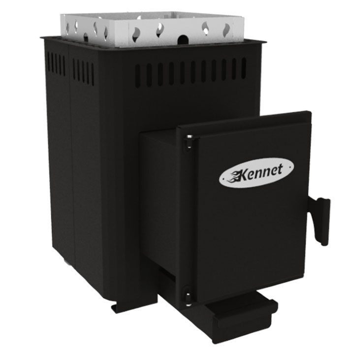 Печь имеет удлиненный топливный канал, что позволяет устанавливать печь в парильном помещении, а закладка дров производится из смежного помещения.