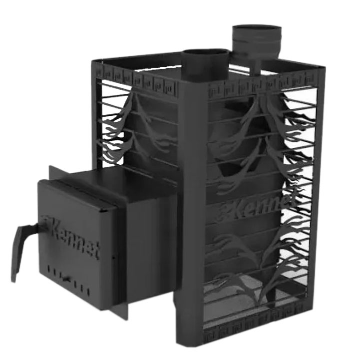 Современная банная дровяная печь с открытой съемной сеткой-каменкой предназначена для обогрева парильного помещения объемом до 14 м³ и получения влажного и сухого пара.