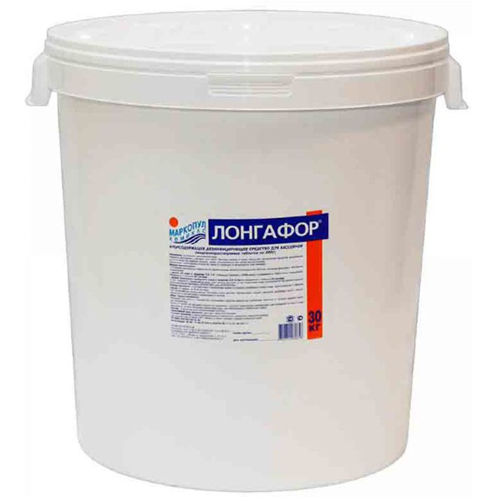 Химия для бассейна хлорсодержащий препарат пролонгированного действия Лонгафор, 30 кг — предназначен для длительной «хлорной» дезинфекции.