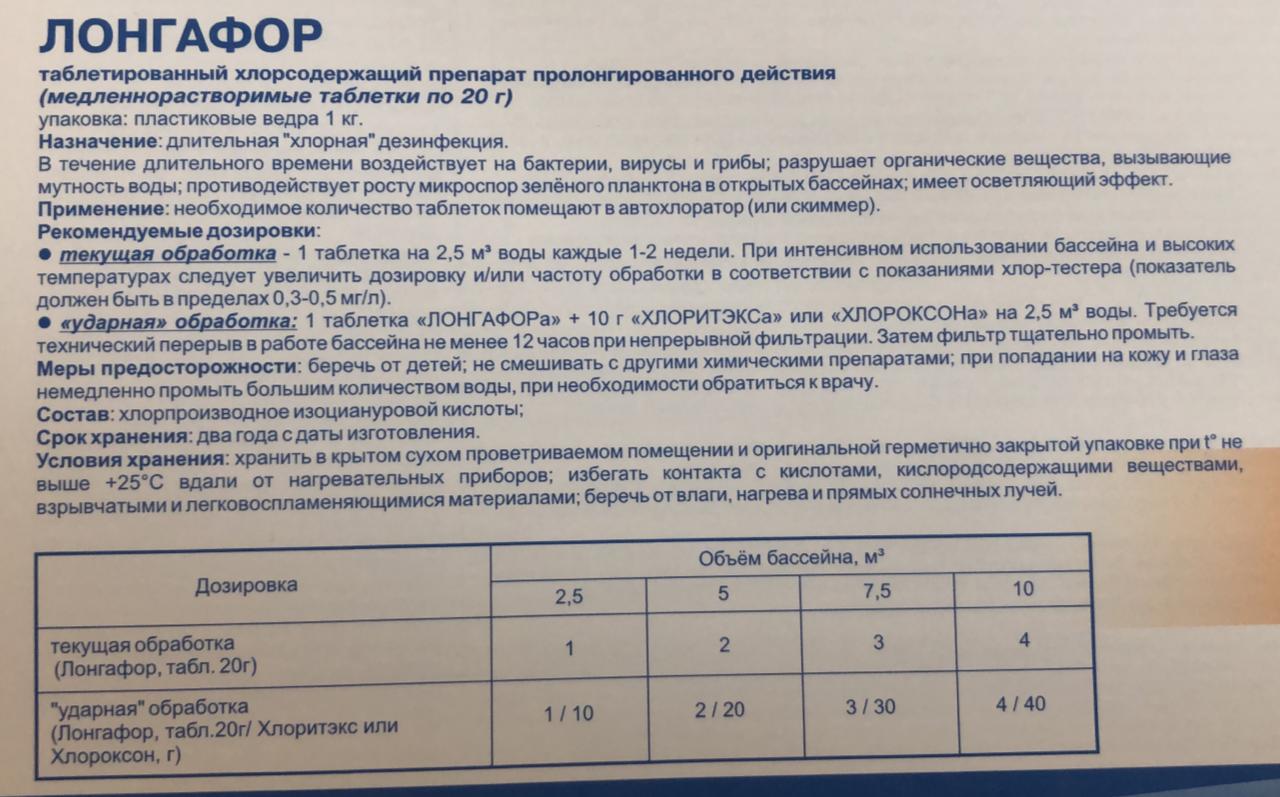 Хлорсодержащий препарат пролонгированного действия Лонгафор, 5 кг — предназначен для длительной «хлорной» дезинфекции.
