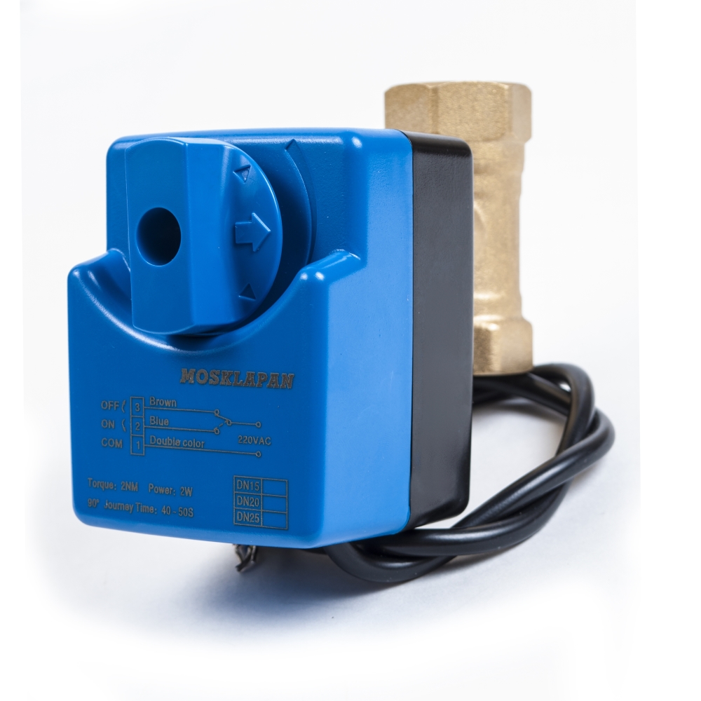 Корпус крана изготовлен из латуни. Шар из нержавеющей стали. Привод -пластиковый корпус с металлическими шестернями. Уплотнение штока из резины NBR, а уплотнение шара из фторопласта PTFE, что обеспечивает длительный срок эксплуатации. Кран шаровой с электроприводом предназначен для систем отопления, водоснабжения,водоподготовки,как аварийное устройство для прохода или запирания потока, а так же в системе УМНЫЙ ДОМ. Функция: запорная. Среда: холодная или горячая вода, 50% раствор гликоля и др. Рабочее напряжение: AC220V ΔPv max 1000 кПа ΔPs 1400 кПа PN 16 бар. Время открытия/закрытия: 45 сек. Класс защиты: IP54.