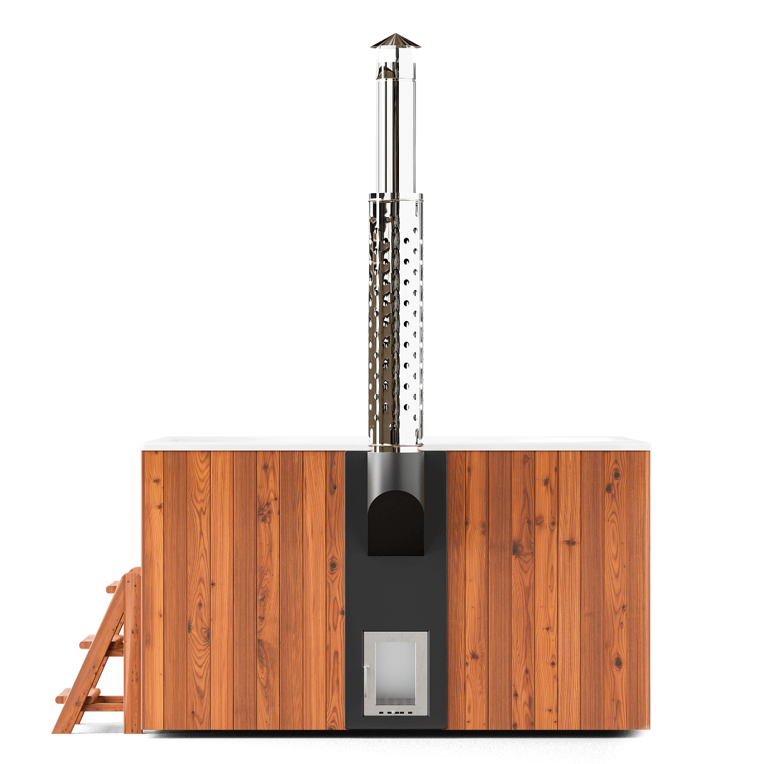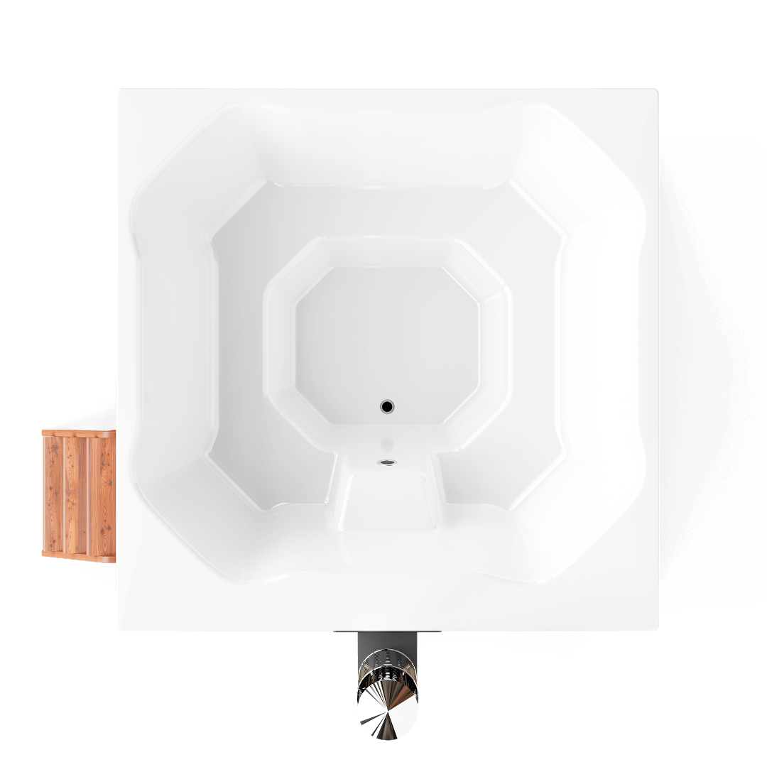 Флагманская модель квадратной формы идеально впишется в ландшафтный дизайн вашего участка и обязательно соберет много комплиментов от гостей дома. Дизайн премиальной купели доведен до совершенства, а функционал продуман до мелочей. Чаша купели изготавливается из инновационного многослойного композита, с использованием декоративно-защитного высокопрочного материала премиум-класса – гелькоут немецкой компании BUFA. Гелькоут абсолютно безопасен для человека и позволяет добиться глянцевого эффекта. Покрытие купели гладкое, приятное на ощупь, ослепительно белого цвета – вода в такой купели всегда кристально чистая. В комплект поставки входит: - Лестница 3 ступени - Защита дымохода - Интегрированная печь мощностью 35 кВт Дополнительные опции и аксессуары (не входят в стоимость): - Термокрышка - Тент - Утипление чаши - Хромотерапия - Аэромассаж - Полка - Цветной вкладыш