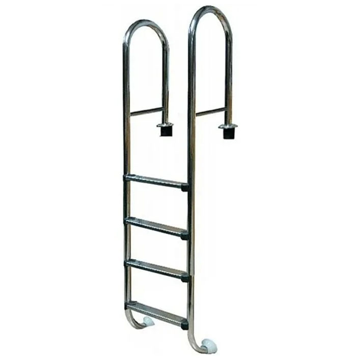 Крепеж не нарушает гидроизоляцию чаши бассейна. Лестница комплектуется полным комплектом крепежных элементов и противоскользящими ступеньками с накладками.