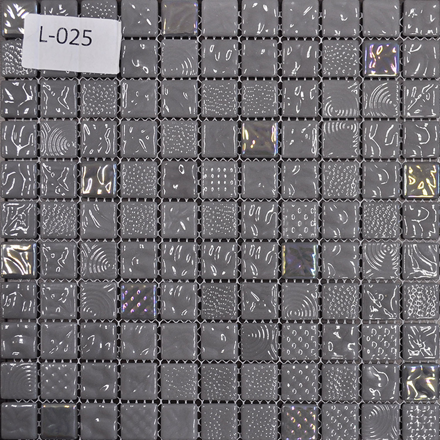 Цвет: серая, с перламуторовыми вставками. Размер: 25 х 25 мм. Описание: Стеклянная мозаика подходит для облицовки не только ровных стен и пола, но также и закругленных поверхностей. Сроки доставки под заказ 14 дней.
