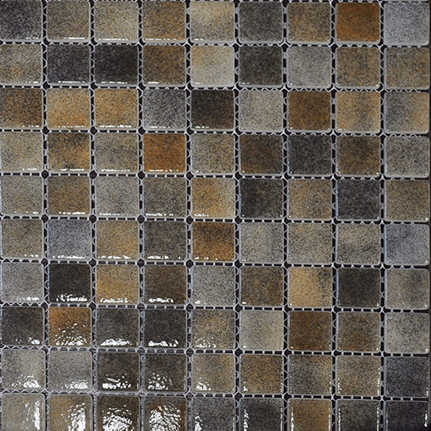 Цвет: серо-коричневая. Размер: 25 х 25 мм. Описание: Стеклянная мозаика подходит для облицовки не только ровных стен и пола, но также и закругленных поверхностей. Сроки доставки под заказ 14 дней.