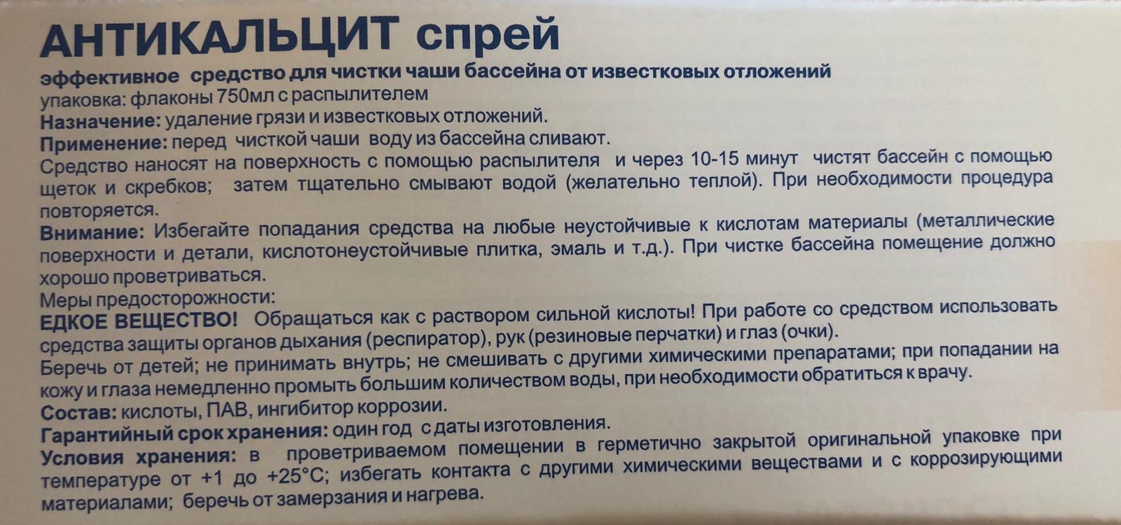 Антикальцит 0,75 л спрей (химия для бассейна)