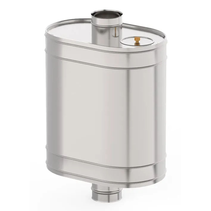 Бак на трубе предназначен для нагрева воды до температуры кипения за счет проходящих сквозь трубу бака отходящих газов. Размещается в парильном помещении над печью. Устанавливается непосредственно на банную печь со стандартным диаметром дымоходного патрубка. Пополнение бака водой производится через отверстие в верхней крышке. Для спуска воды в нижней части бака предусмотрен штуцер с резьбой ⌀3/4. Отличительной особенностью баков производства компании УМК является марка стали и толщина металла. Баки изготавливаются из жаростойкой стали, стабилизированной титаном, AISI 439. Чтобы увеличить срок службы любого бака, не следует топить печь при менее, чем наполовину заполненном баке. Перед наступлением заморозков необходимо слить всю воду из бака и труб. Все контуры подключения баков должны производиться только металлическими трубами.