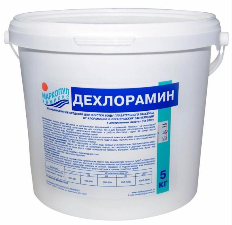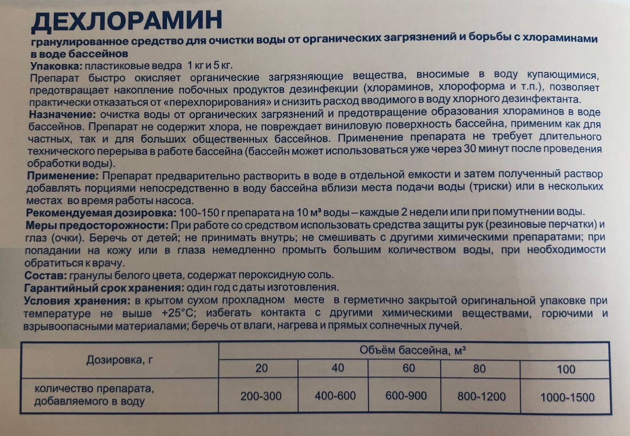 • Важно отметить, что после применения «Дехлорамина» бассейн можно использовать всего через 30 минут!